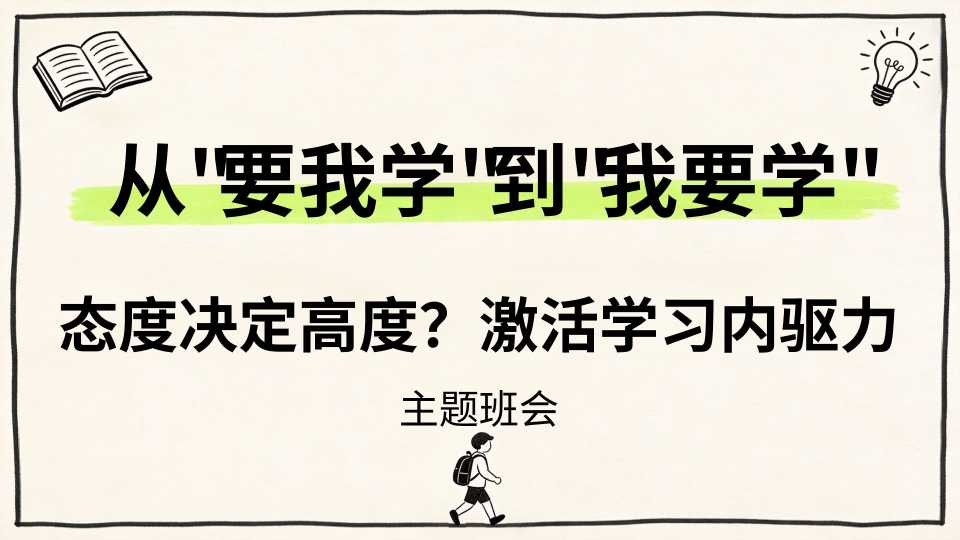 【带讲稿】【通用】【内驱力】激活学习内驱力主题班会:从要我学到我要学 (2) 3天前 教学课件 7 购买前,请一定要先点击这里看看,欢迎持续关注,精彩模板每天推送 预览结束,一共34页,请下载后查看 购买前,请一定要先点击这里看看,欢迎持续关注,精彩模板每天推送 资源下载下载价格19 文币VIP免费立即购买如有任何下载或充值问题,请添加客服微信:bgwd88,我们会马上给你处理 0 【带讲稿】【通用】【内驱力】激活学习内驱力主题班会:从要我学到我要学