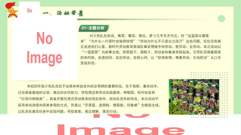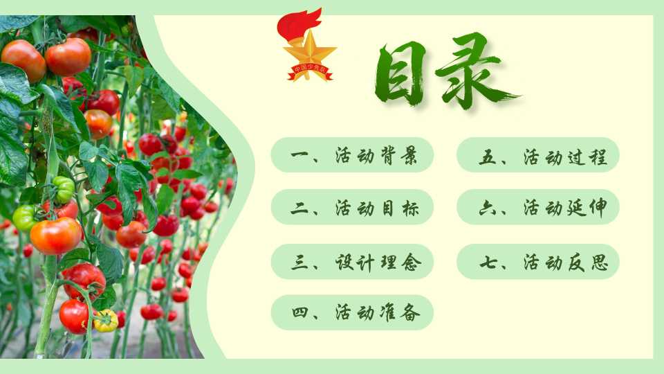 【带讲稿】少先队活动课:从田间,到心间——一篮蔬菜的来时路 3天前 ppt模板 5 购买前,请一定要先点击这里看看,欢迎持续关注,精彩模板每天推送 预览结束,一共26页,请下载后查看 购买前,请一定要先点击这里看看,欢迎持续关注,精彩模板每天推送 资源下载下载价格19 文币VIP免费立即购买如有任何下载或充值问题,请添加客服微信:bgwd88,我们会马上给你处理 0 教学课件
